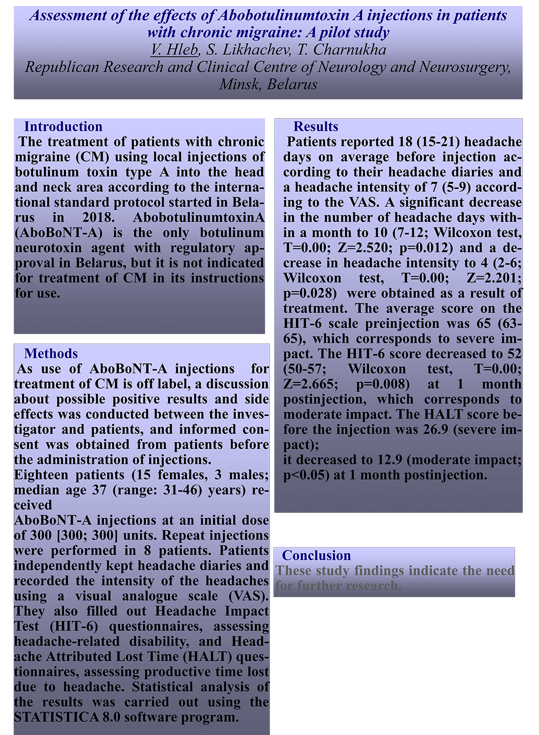 ASSESSMENT OF THE EFFECTS OF ABOBOTULINUMTOXIN A INJECTIONS IN PATIENTS WITH CHRONIC MIGRAINE: A PILOT STUDY