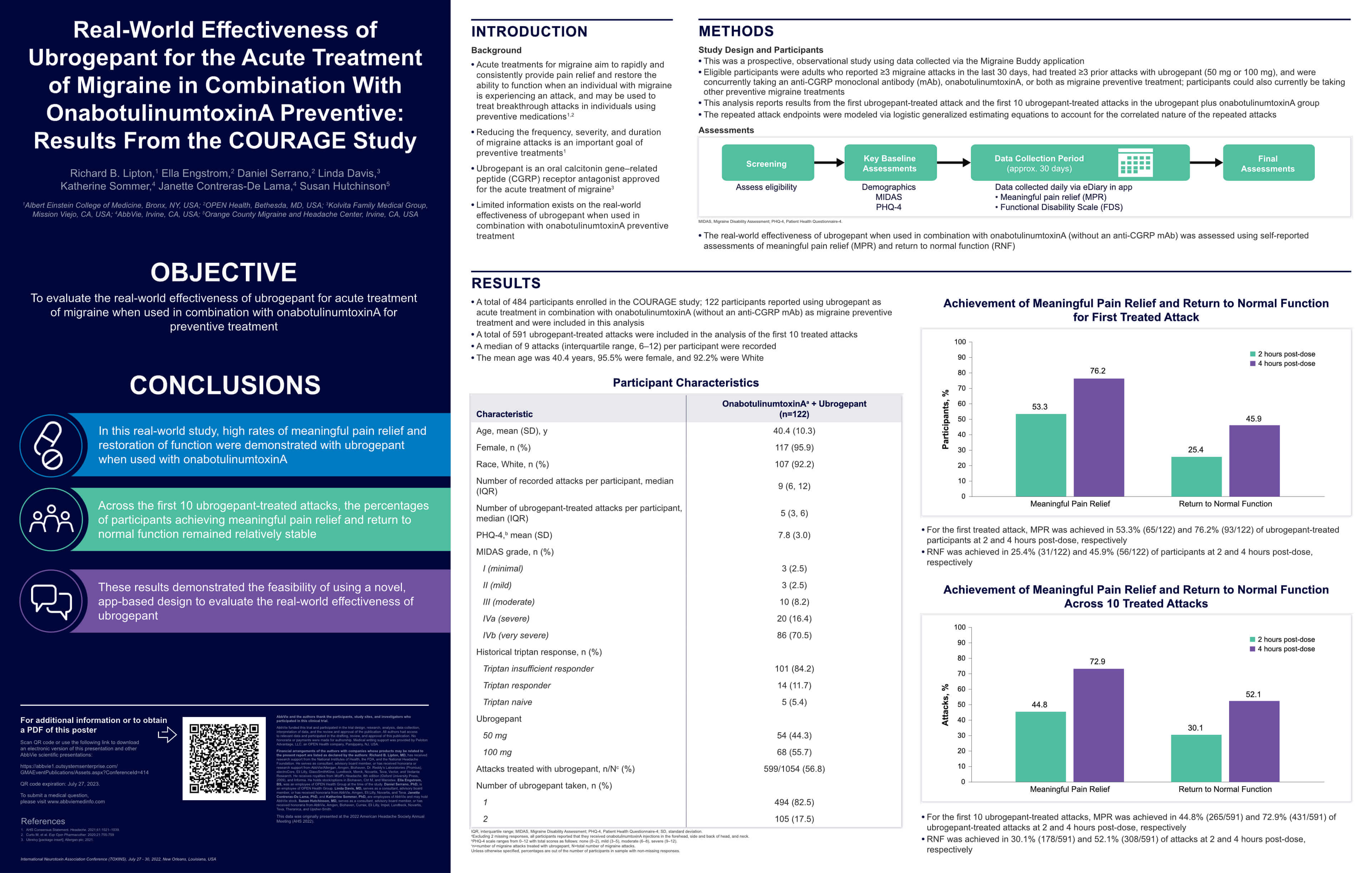 REAL-WORLD EFFECTIVENESS OF UBROGEPANT FOR THE ACUTE TREATMENT OF MIGRAINE IN COMBINATION WITH ONABOTULINUMTOXINA PREVENTIVE: RESULTS FROM THE COURAGE STUDY
